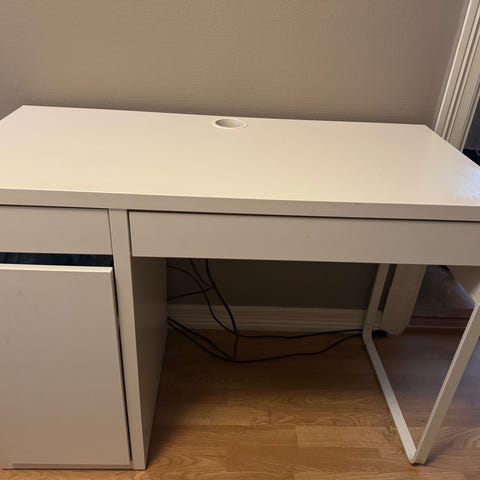 Veldig pent brukt skrivebord fra IKEA selges. Er montert på to skuffer i ene hylla. Kan få med kontorstol på kjøpet hvis ønskelig.