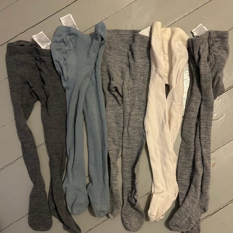 "Finstrømpebukser". Den blå er ubrukt og fra Melton, de andre er brukt men i ok stand. Dette er tykke strømpebukser( ei uten fot) .