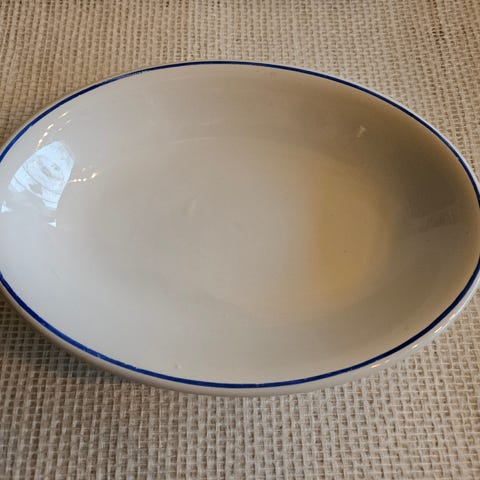 Flott og dekorativt ildfast fat i serien «Vår» fra Rørstrand. Mål: lengde 22 cm, bredde 17 cm og høyde 5 cm. Fatet ser nytt ut, har ingen skader eller bruksmerker. Pris 300 kr. Kan ev. sende med PostNord til 69 kr.