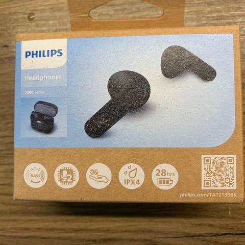 Så vidt brukte, trådløse ørepropper fra Philips. Som nye. Nypris var 599,-. Ladekabelen følger med.