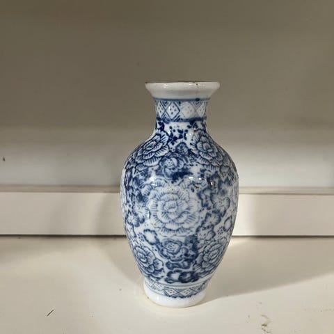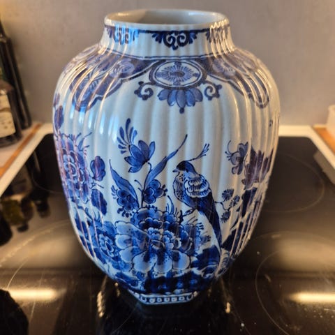 Delft Blue genever-flaske med blått mønster som viser en vindmølle. tradisjonelt blått dekorativt design. Kan hentes på Alnabru i Oslo