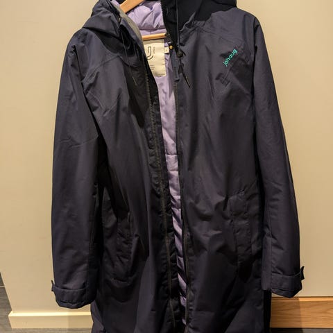 Johaug parkas i størrelse L for damer. Pent brukt, en liten skade på en strikk festet til glidlås på den ene lommen. Vises på ene bildet. Nydelig blåfarge, kommer best frem på bilde nr. 3.