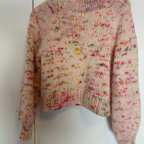 Louisiana hjemmestrikket genser. Genseren er i en superfin blå som passer både sommer og vinter. Siste bilde er lånt fra petiteknit.