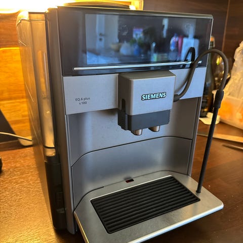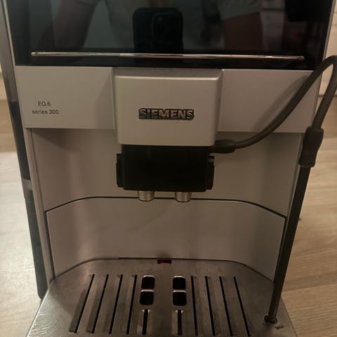 Selger en Siemens EQ.6 Plus S100 helautomatisk kaffemaskin. Maskinen er pent brukt, godt vedlikeholdt og fungerer som den skal. Lager nydelig kaffe med ett tastetrykk – perfekt for kaffeelskeren.