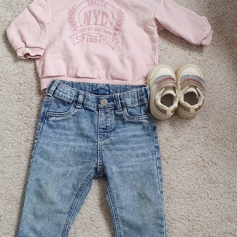 3 delers sett fra Next str 80-86. Pent brukt av et barn. Skinnsko fra Next følger med. Størrelse 6-12 mnd.