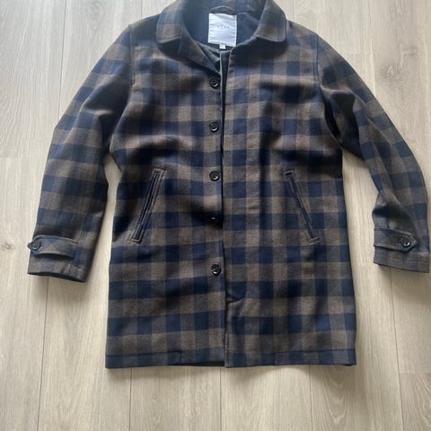 Massimo Dutti frakk i brun farge, laget av ull/cashmere. Passer herre i størrelse L. Kåpen har klassisk design med knapper og er egnet for utendørs bruk. Den har noen små overflatehull, se bilde av krage, men det synes knapt. Gitt prisen, genial frakk for en tur ut og som man ikke trenger være så redd for.