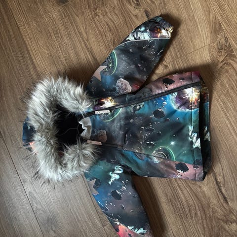 Name it Vossatassar barneklær i størrelse 1år og 2år bruker .blå farge, unisex. Produktet er laget for barn og har egenskaper som vindtett, vannavstøtende og pustende materiale. Passer for utendørs bruk i skiftende værforhold.