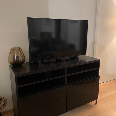 Hvit TV-benk, noen bruksmerker bak (se bilder), i utmerket stand.