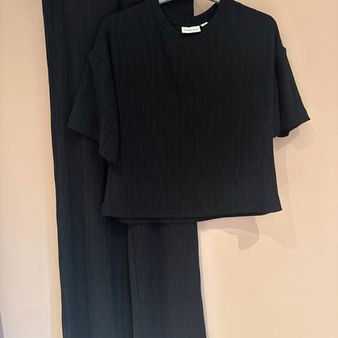 overdel-set som består av cropped jakke og genser/T-shirt. Passer S