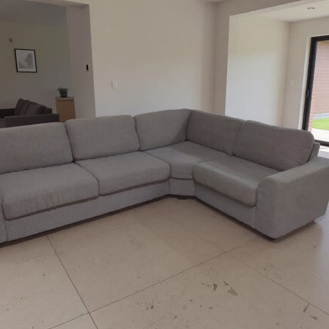 Pen grå hjørnesofa i god stand. Ingen skader eller problemer. Den tar seg bra ut i stuen, og er komfortabel å sitte i.