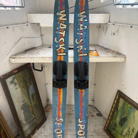 Schiedel vannski i blå farge med bindinger. Laget for vannsportaktiviteter og tilpasset bruk i vann for barn. Skiens underside er i tremateriale.