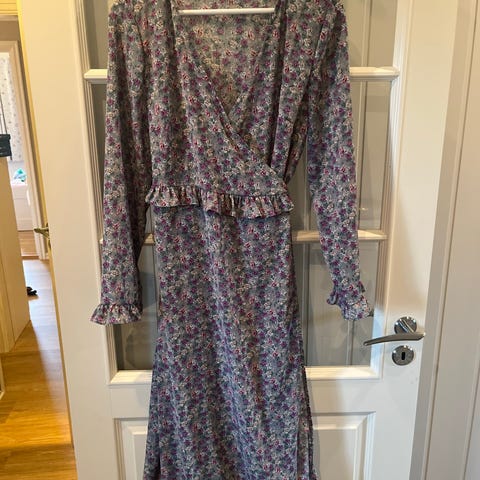 Selger en nydelig mønstret omslagskjole i størrelse 42. Kjolen er brukt kun et par ganger og fremstår som svært pent brukt uten slitasje.