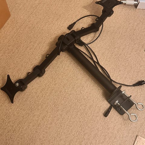 Skjermstativ til 3 skjermer selges pga blir ikke brukt. Mangler kunn skruene til foten, ellers i godt stand.
