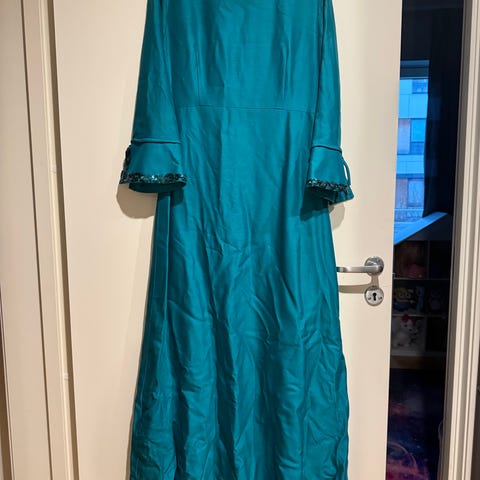 Nydelig vintage drakt fra Harrods veldig Mad Men stil. Midjen på skjørtet er supersmalt men gan legges ut. Ellers er drakten i petit men jeg kan måle om du er interessert. Stoffet føles som silke men det står ikke noe sted. Mønstret er veldig typisk for perioden og drakten er en skatt. Ingen hull eller revner.