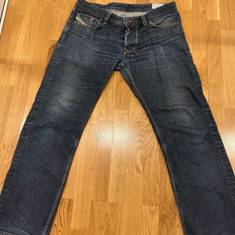 Diesel denimbukse i blå farge, størrelse 48 for herre med midjemål W32. Laget av denim materiale.