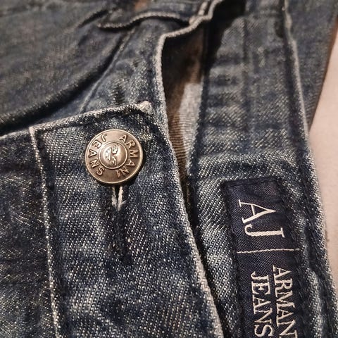 Armani Jeans Denim bukse i svart farge, størrelse 48 for menn med midjemål W32. Laget av denim materiale.