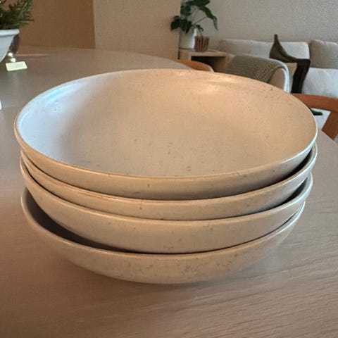 Den ene boksen har vært åpnet og glassene har stått til utstilling i hylle. Aldri brukt.