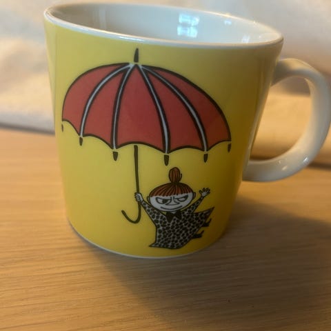 Mummikopp blå kjærlighet, kun stått til utstilling. Fremstår som ny med etikett. Koppen har Moomin Arabia stempel og ble kun solgt i Japan (ikke 80 år på undersiden).