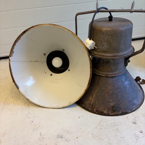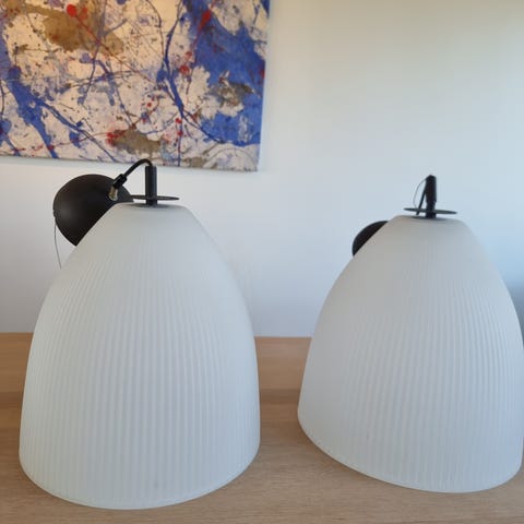 Store brukte lamper selges . Med nyere lampeopplegg. Det ekstra fine er at glassene i bunn er inntakt på begge .