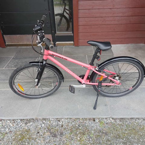 Ca. 15 år gammel og lite brukt de siste 5 årene. Jukser litt på giret på det tyngste, men bør være greit å justere og har ikke vært et problem når vi har brukt sykkelen. Dekk har gode mønster, men må trolig bytte slange bak. Bakbrems er litt tung, men fungerer helt fint. Er ellers i god stand, og har lite rust. Fin sykkel som har mange år igjen. Selges pga ny sykkel.