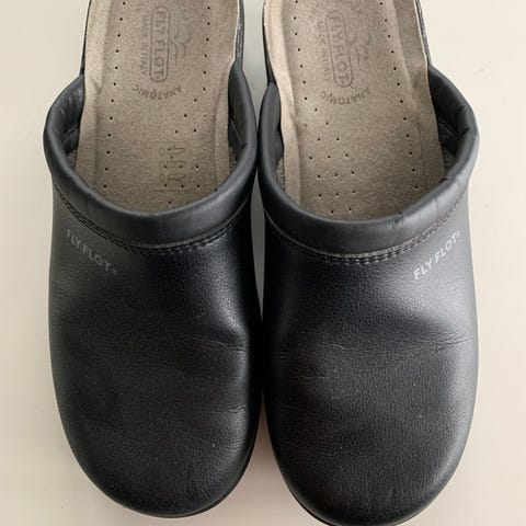Tøflene er str. 41/42, i syntetisk materiale. De har ikke vært brukt, men prøvd.