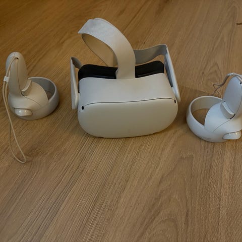 Vurderes solgt: Meta (tidligere Oculus) Quest 2 VR-brille med trådløse kontroller og ladekabel. Lite brukt, leveres i original emballasje. 128Gb lagring.