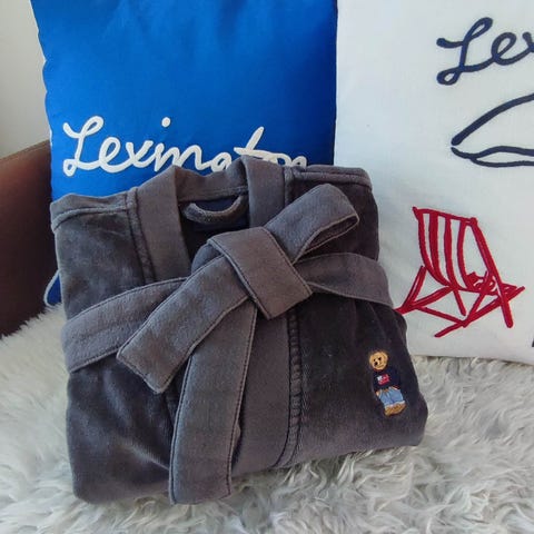 Ralph Lauren Polo badekåpe i størrelse L for menn. Laget av bomull med hvit farge. Badekåpen har belte i midjen og lommer, egnet for bruk etter bading eller som komfortplagg.