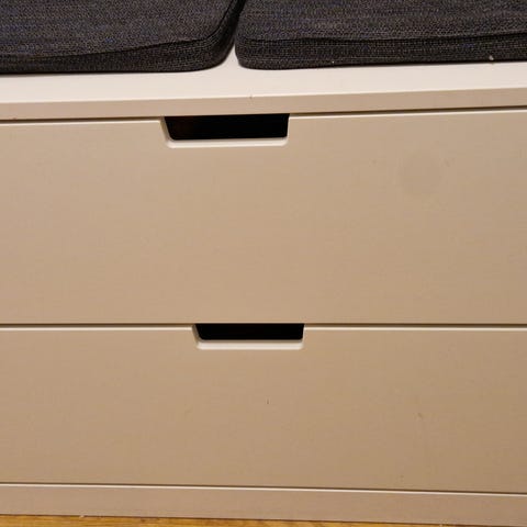 Pent brukt liten kommode/nattbord med 2 skuffer.