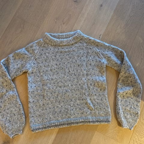 Strikket i garnet tynn Sunday og tynn silk mohair fra Sandnes garn i en nydelig kremhvit farge.