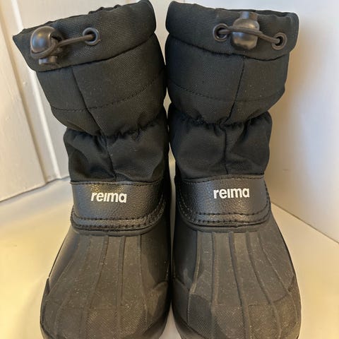 Reima barnestøvler for jente i størrelse 21. Støvlene har en kombinasjon av tekstil og gummimateriale, med justerbar snøring øverst for bedre passform. Designet for å gi beskyttelse og komfort til barnets føtter ved bruk i våte og kalde forhold.