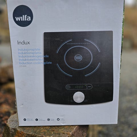 Logik kokeplate med to kokeplater i hvit utførelse. Produktet er designet for matlaging og har separate kontrollknapper for hver plate.