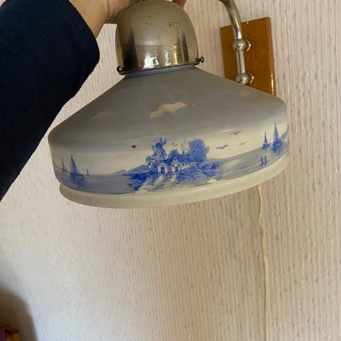 Selger vegglampe, messing (trenger litt pussing) i maritim stil. "glasset" er i plast. Lampa fungerer. Mål 25 x 25 cm. Dybde ca 10 cm