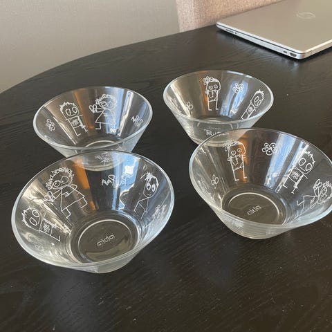 Selges ubrukte dessert fat og dessert skåler. Det er 12 dessert fat og 6 dessert skåler i samme merke. Selges samlet for 300 kr.