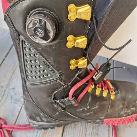 Lite brukte snowboardstøvler i størrelse 43, fargene svart og hvit. Støvlene er laget for snowboardbruk og har snøring for justering.