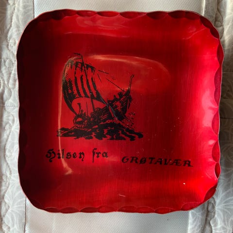 Små blikkfat med gravert inn - E.Solberg og Co- Råde