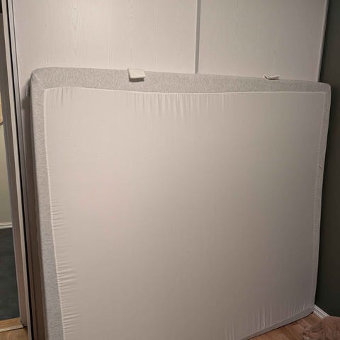 Passer til standard overmadrasser. Laget i slitesterkt materiale med grått trekk. Meget god seng.