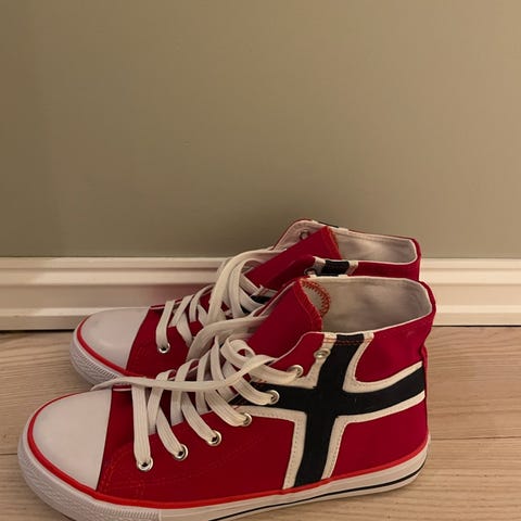 Sneakers med Norsk flagg str 38 selges. De skulle brukes i russetiden, men er fremdeles ubrukte😂