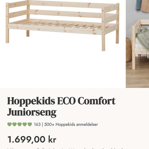 Til salgs seng på 90x200 cm, brukt av ett barn i 1,5 år. Mindre bruksmerker her og der, men generelt i god stand. Madrass og overmadrass ble også kjøpt nye fra Jysk for 1,5 år siden (trekket kan vaskes i maskin).