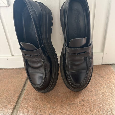 Högl mokkasiner i svart farge, størrelse 38. Skoene har en solid såle og glatt overflate, egnet for daglig bruk.