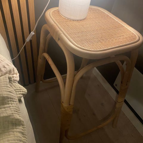 Ikea bord / oppbevaringshylle i eik, meget pent brukt men fikk et lite merke av orkide på toppen.