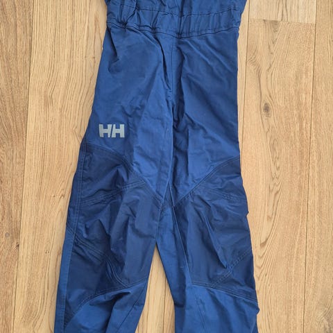 Helly Hansen bukse med seler i marineblå farge. Buksen har glidelås foran og elastisk midje, tilpasset for bruk i ulike værforhold og aktiviteter. Helly tech.