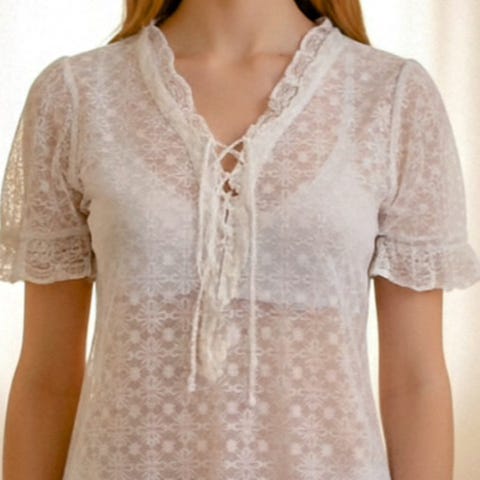 Joutsen nattkjole i størrelse M for dame, laget av nylonmateriale. Kjolen har en lilla farge og er designet med tynne stropper og blonder.