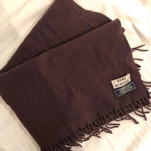 Acne skjerf i fargen burgunder selges. Pent brukt.