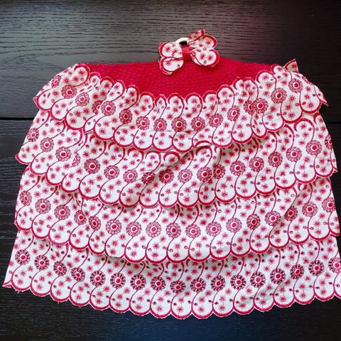 To ulike røde tapeter med blomster.
