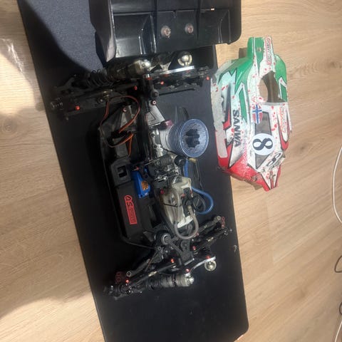 Har hatt en hard landing da gyro løsnet under take-off så den traff bakken hardt og løsnet understellet.