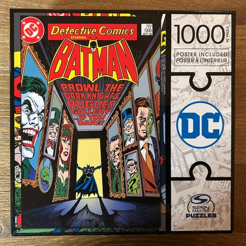 DC Batman puslespill med 1000 brikker. Motivet viser et klassisk Batman-tegneserieomslag fra Detective Comics. Puslespillet leveres i original eske med bilde av motivet. Passer for puslespillentusiaster og samlere.