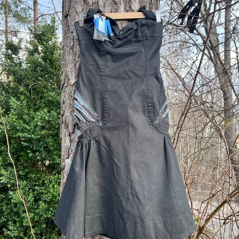Hell Bunny Venom Mini Dress er en svart kjole i størrelse XL, laget av bomull. Kjolen har justerbare stropper og et dekorativt trykk på brystet. Designet for kvinner.