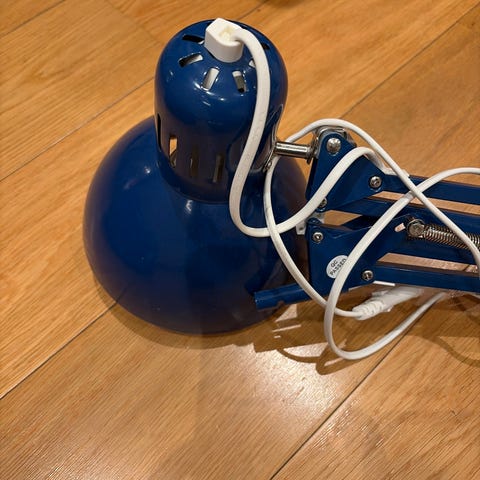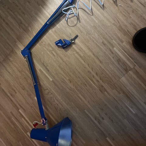 Vakker vintage bordlampe i blått. Mulig luxo men er usikker