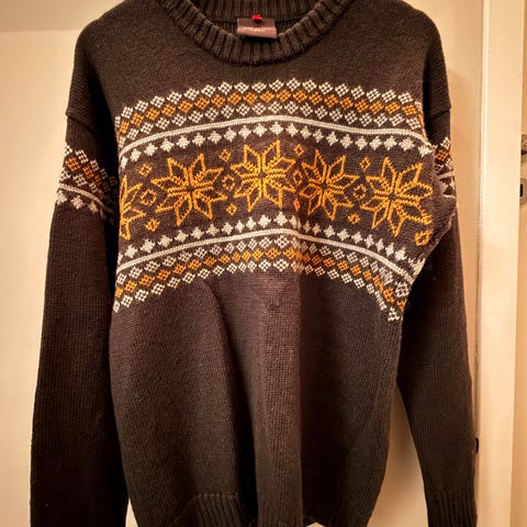 Figgjo-genser selges. Noe uklart når denne er fra, men den fremstår som noe fra søttitallet, eller?