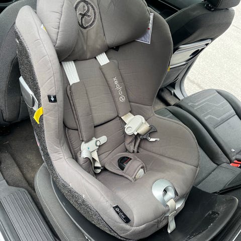 Cybex Barnesete med størrelse 36 cm. Setet har en svart farge og er designet for barn. Egnet for bruk i bil for å sikre barn under transport.